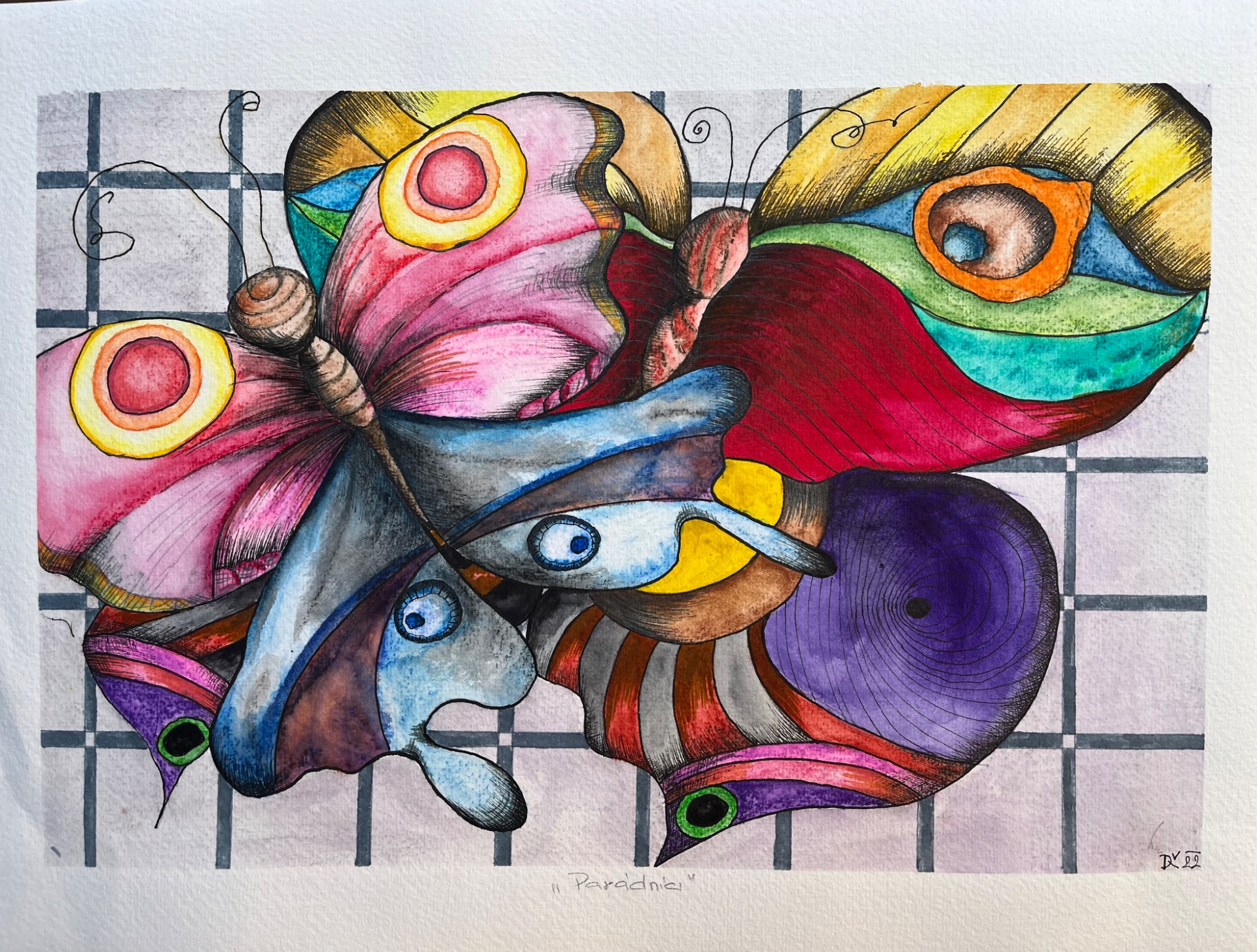 Mixed media - acrylic, copper wire and tape, tiffany technique,