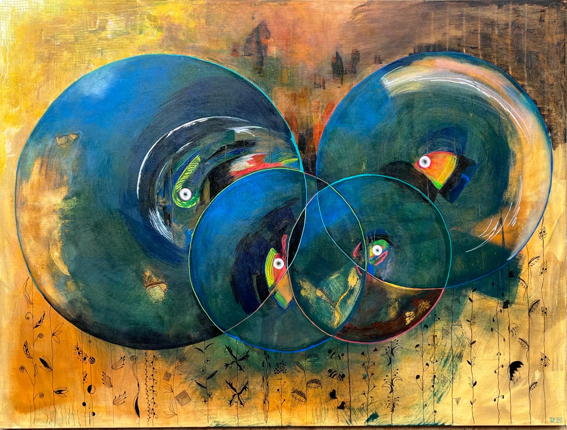 Akryl na plátně, měď, sklo / acryl, canvas, copper, glass/